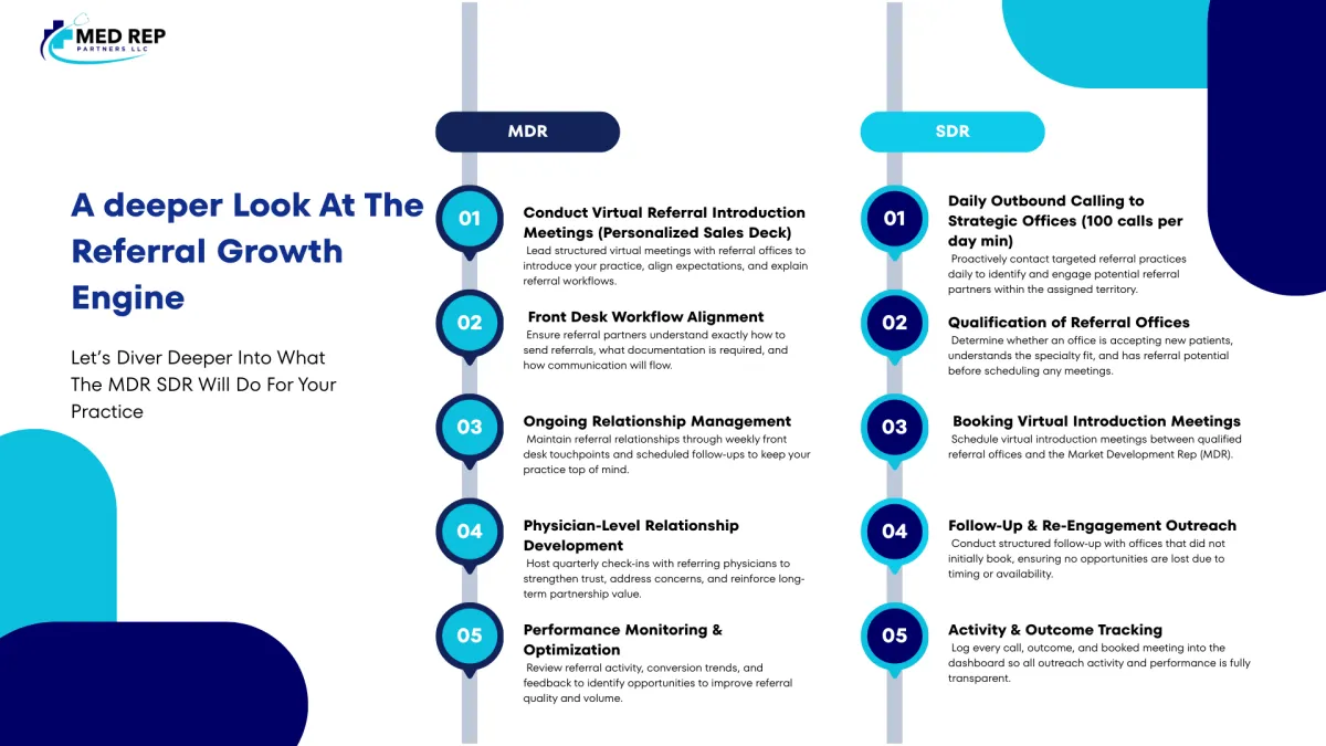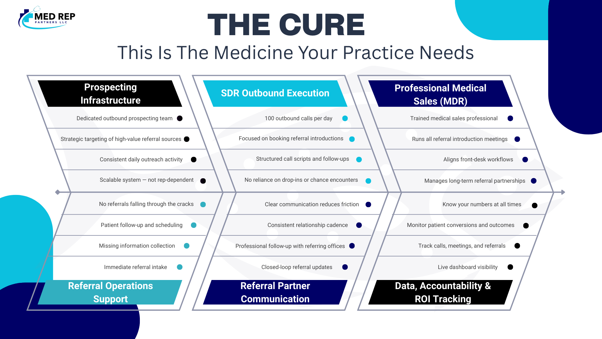 We help specialty practices grow by building strategic referral partnerships, protecting referrals through operational support, and delivering clear, measurable ROI.