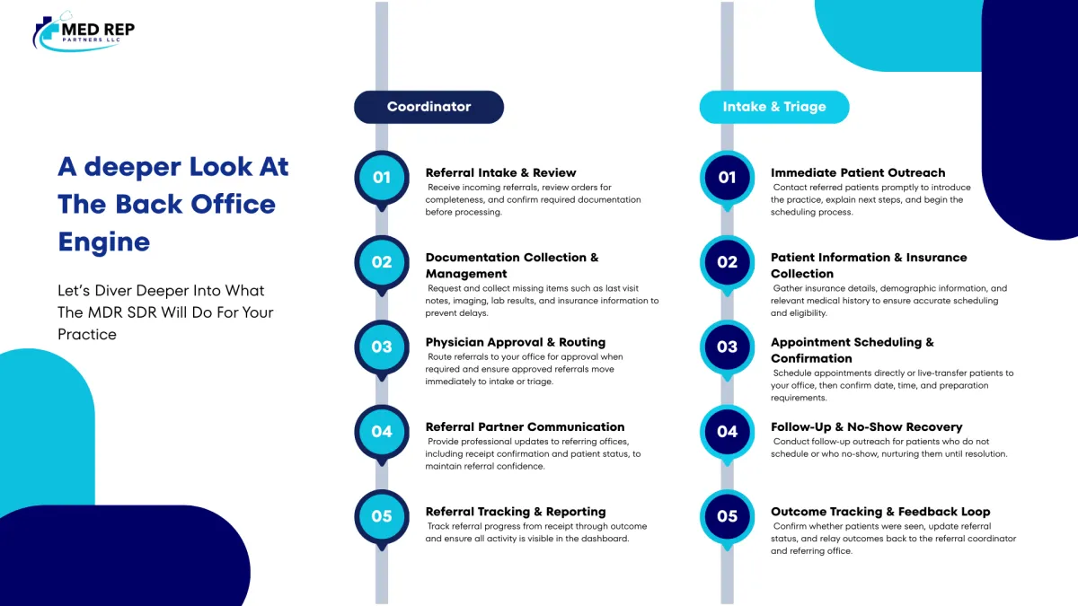 Every referral that isn’t processed quickly or completely is lost revenue. Operational support protects the referrals you earn and ensures patients actually get scheduled and seen.